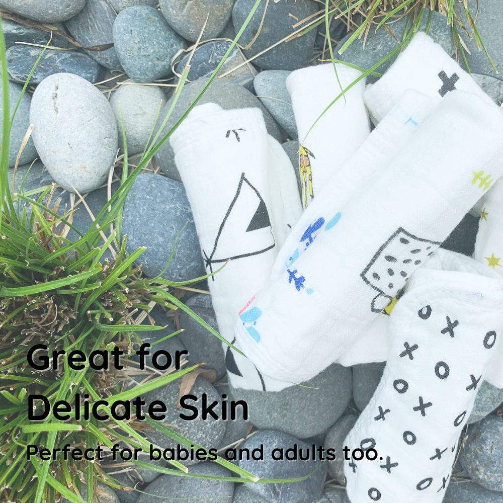 Cotton Muslin Wipes: Made from 100% organic cotton for gentle cleansing on sensitive skin.